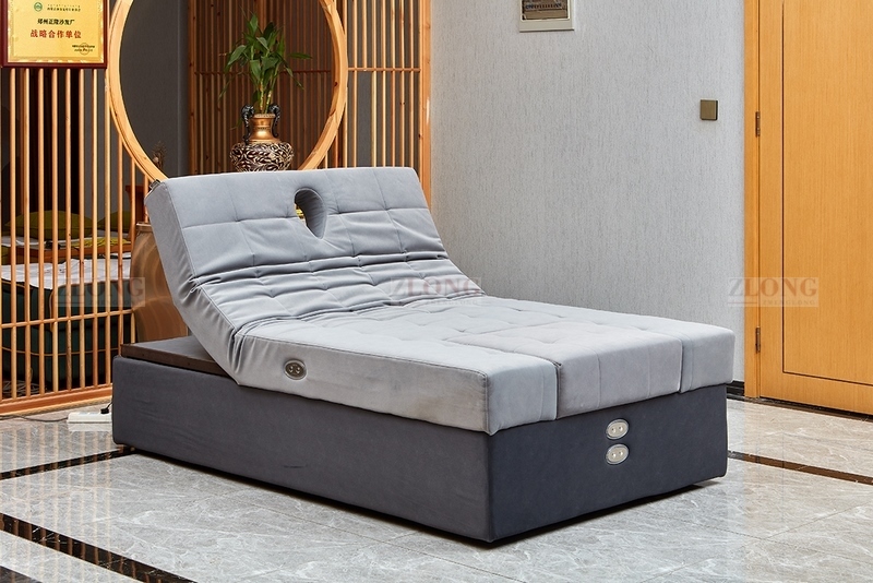核心功能方面,配备后背电动升降,可自由调节靠背角度,适配平躺、半躺、阅读或观影等多种姿势;整体升降设计,方便不同身高用户调整床体高度,便于上下床或技师操作;前后滑动功能,可灵活调整床体位置,优化空间利用或配合服务流程;更内置电动足浴盆,实现“躺卧即泡脚”的一体化体验,提升放松效率与舒适度。