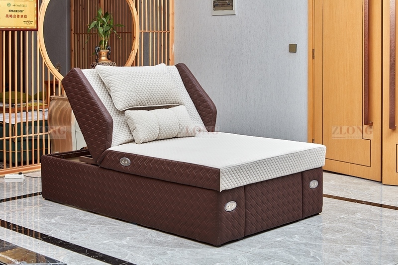 整体设计简约大气,深棕与米白的配色沉稳而不失温馨,适配多种家居风格。这款万山红电动盆款式沙发床是足浴会所兼具颜值与功能的上佳之选。